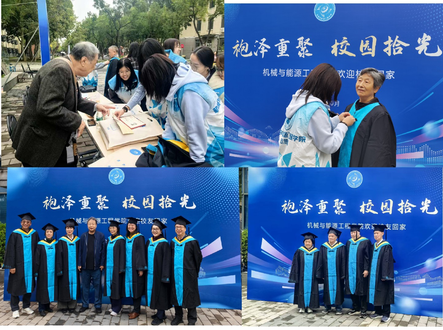 金秋十月,机械与能源工程学院以 “袍泽重聚,校园拾光” 为主题举办学院校友返校日活动。海内外校友重返母校,共忆青葱岁月,共话学院发展。智研楼门前志愿者接待热情,氛围暖意融融。校友们身着新版学位服,在熟悉的校园景致中驻足合影,快门声里定格着与母校的重逢之喜,也传递着对青春记忆的珍视。