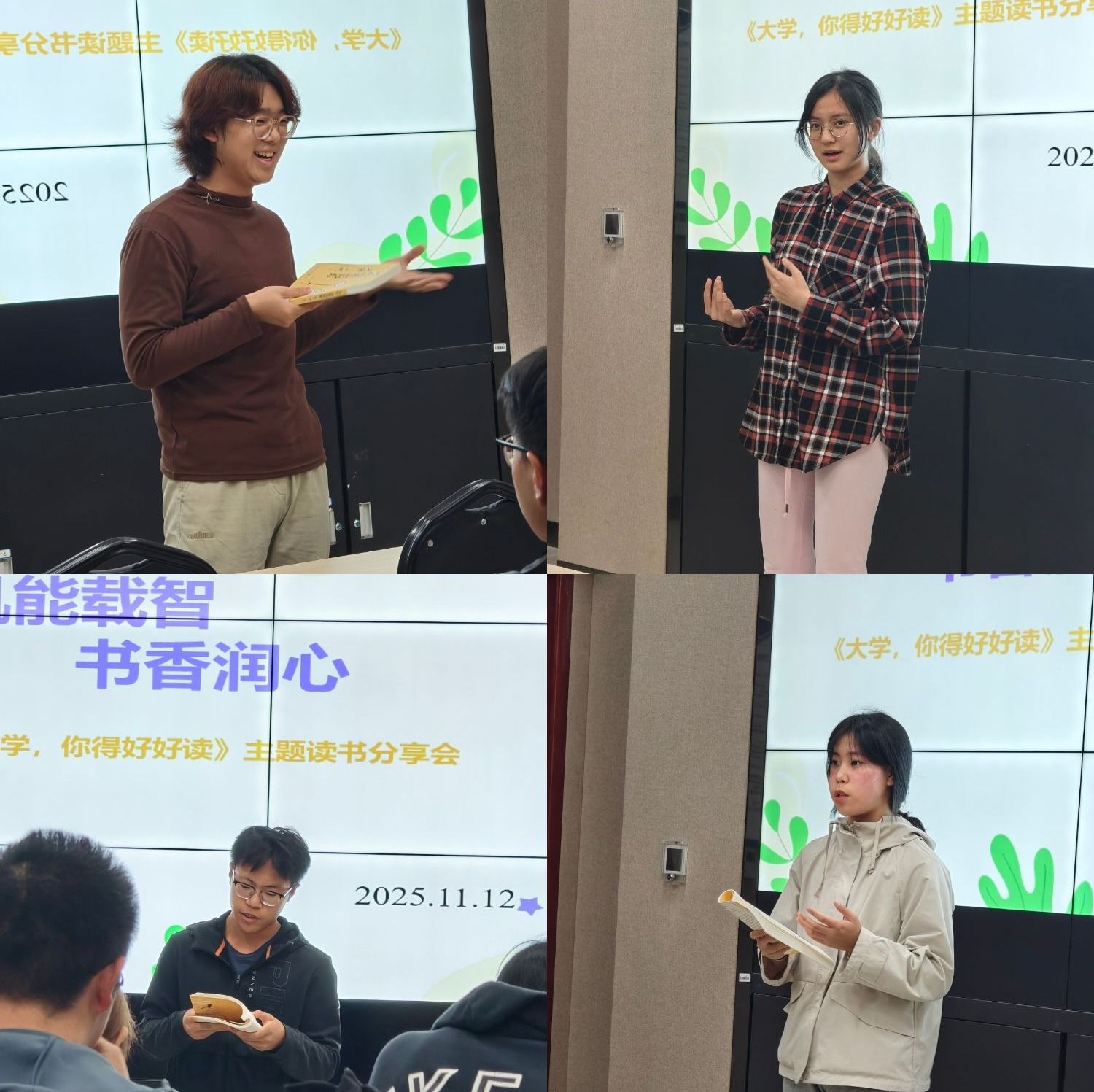 分享会上,同学们踊跃发言,畅谈阅读感悟。有的同学结合书中关于时间管理的内容,分享了自己平衡学习与生活的方法;有的同学聚焦人际交往篇,讲述了如何运用书中技巧化解寝室矛盾、克服社交恐惧;还有同学围绕理想信念主题,表达了以大学生身份践行社会责任、追求真知的决心。大家纷纷表示,通过层层深入的阅读分享,对大学生活有了更清晰的认知,不仅解答了入学以来的诸多困惑,更找到了自我提升的方向,制定了针对性的改进计划。